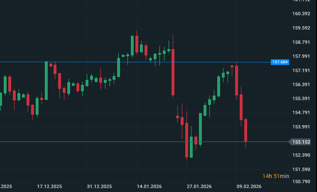 Grafico Giornaliero di UsdJpy e il ritorno sotto i 154 - Fonte: XStation