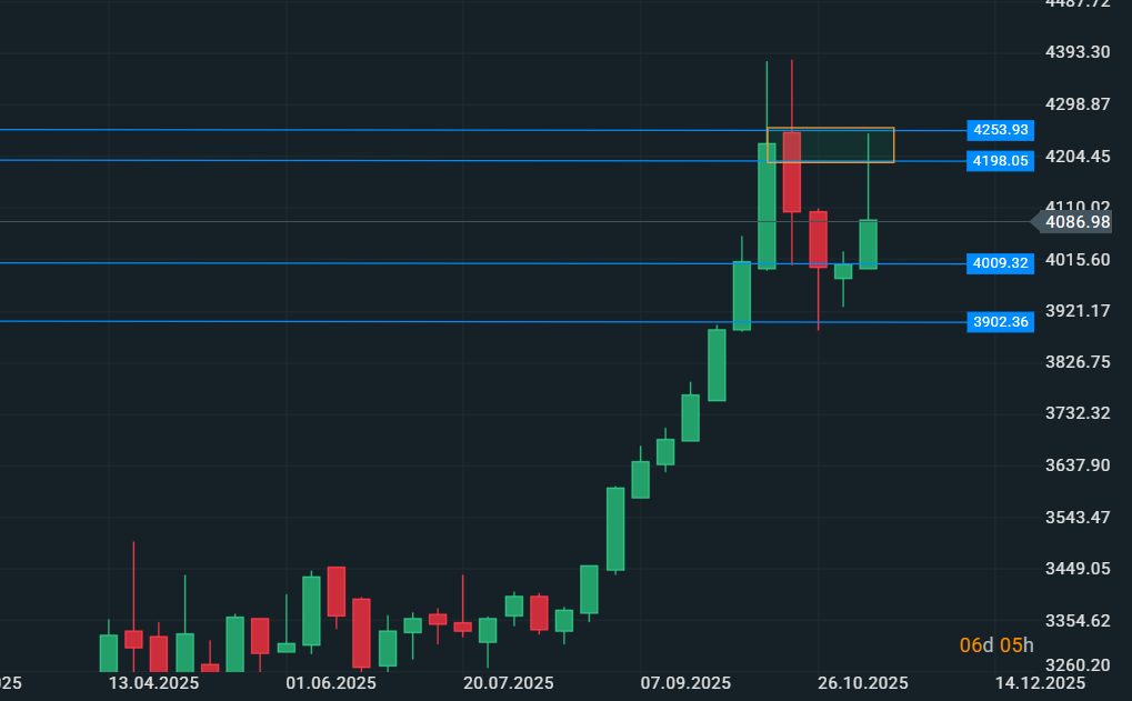 L'area dei massimi di oro che é stata venduta nel corso della scorsa settimana e che valida i massimi venduti nelle settimane precedenti - Fonte: XStation