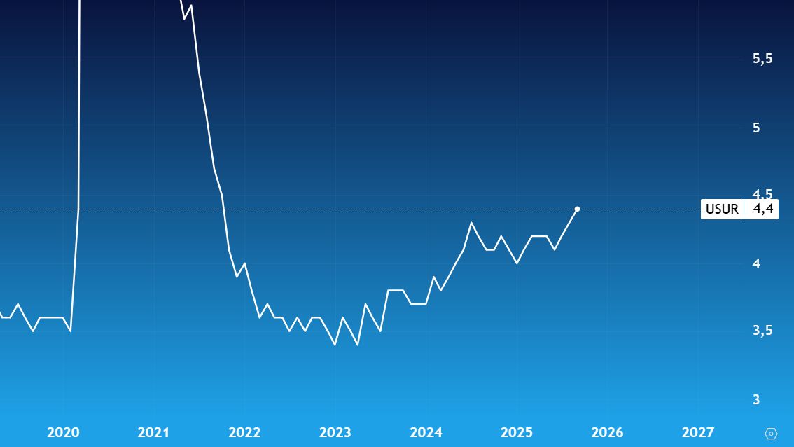 Grafico del Tasso di Disoccupazione Usa sul nuovo massimo al 4,4% - Fonte: XStation