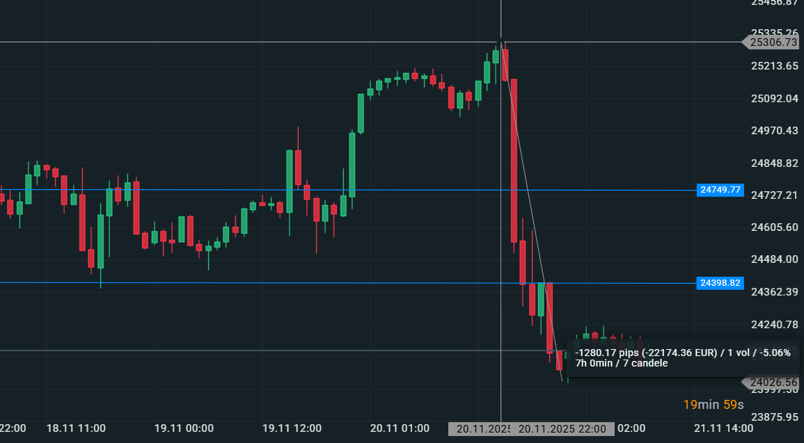 Inizialmente abbiamo assistito a un ritorno al rialzo delle aspettative sul taglio dei tassi, dato che é rientrato nel corso della giornata e che vede ora un ritorno al rialzo delle aspettative sui tassi fermi con una probabilitá di oltre il 65% per i tassi fermi. Una condizione relativamente anomala considerando il brutto dato occupazionale e la dinamica dei mercati. Ricordiamo che il prossimo dato occupazionale previsto per il 5 dicembre, uscirá invece il 16 dicembre, dopo la riunione Fed del 10 dicembre. Questo cambia tutto, un dato in uscita il 5 dicembre sarebbe stato sicuramente incidente nella possibilitá di vedere un taglio dei tassi.