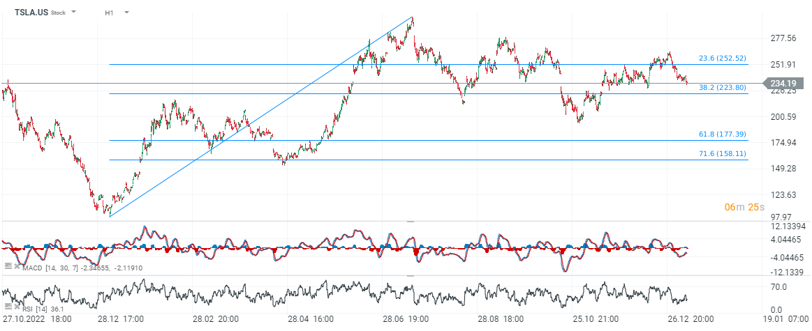 Tesla (TSLA.US) è il titolo con le performance peggiori tra le BigTech di oggi, e possiamo vedere che potrebbe essere dovuto a stime di range più basse dopo che le autorità di regolamentazione statunitensi hanno modificato le regole sui test dei veicoli. Il produttore di veicoli elettrici ha abbassato le stime sull’autonomia di guida della sua gamma di auto. Le autorità di regolamentazione statunitensi spingono le case automobilistiche a riflettere accuratamente le prestazioni delle auto nel mondo reale.