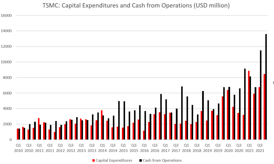 TSMC ha annunciato qualche tempo fa che prevede di spendere 100 miliardi di dollari per espandere la propria capacità produttiva nei prossimi anni. Maggiore chiarezza sulla questione è stata fornita con l'ultimo comunicato sugli utili trimestrali poiché la società ha annunciato che i piani CapEx per il 2022 presuppongono una spesa di $ 40-44 miliardi! Si tratta di oltre $ 10 miliardi in più rispetto all'obiettivo CapEx dell'azienda per il 2021! Tali fondi saranno spesi per espandere e potenziare la capacità di produzione, nonché per migliorarne la tecnologia. L'azienda prevede una grande espansione poiché la sua attuale capacità non le consente di cogliere pienamente il boom che sta vivendo il mercato dei semiconduttori. La domanda è così alta che non si vede alcun miglioramento anche se le aziende stanno espandendo la produzione. Secondo i dati di Susquehanna FInancial Group, i tempi di consegna dei semiconduttori sono aumentati di 6 giorni a dicembre, a 25,8 settimane.