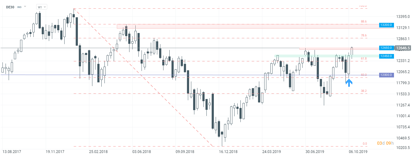 Intervallo settimanale(W1) DE30 . Fonte: xStation5
