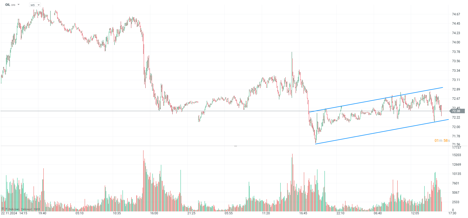 Il petrolio (OIL) scende solo leggermente oggi, muovendosi in un potenziale pattern a bandiera ribassista.