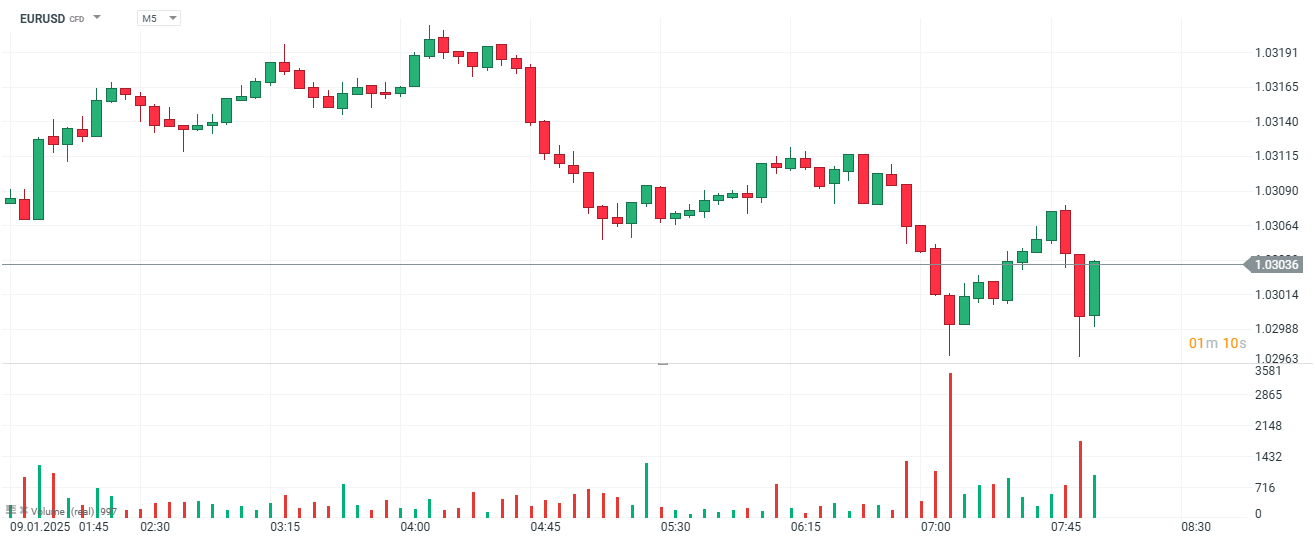 La produzione industriale tedesca su base annua (aggiustata stagionalmente a novembre) è risultata pari a -2,8% rispetto a una stima di -4,5% e a un -4,75% precedente.