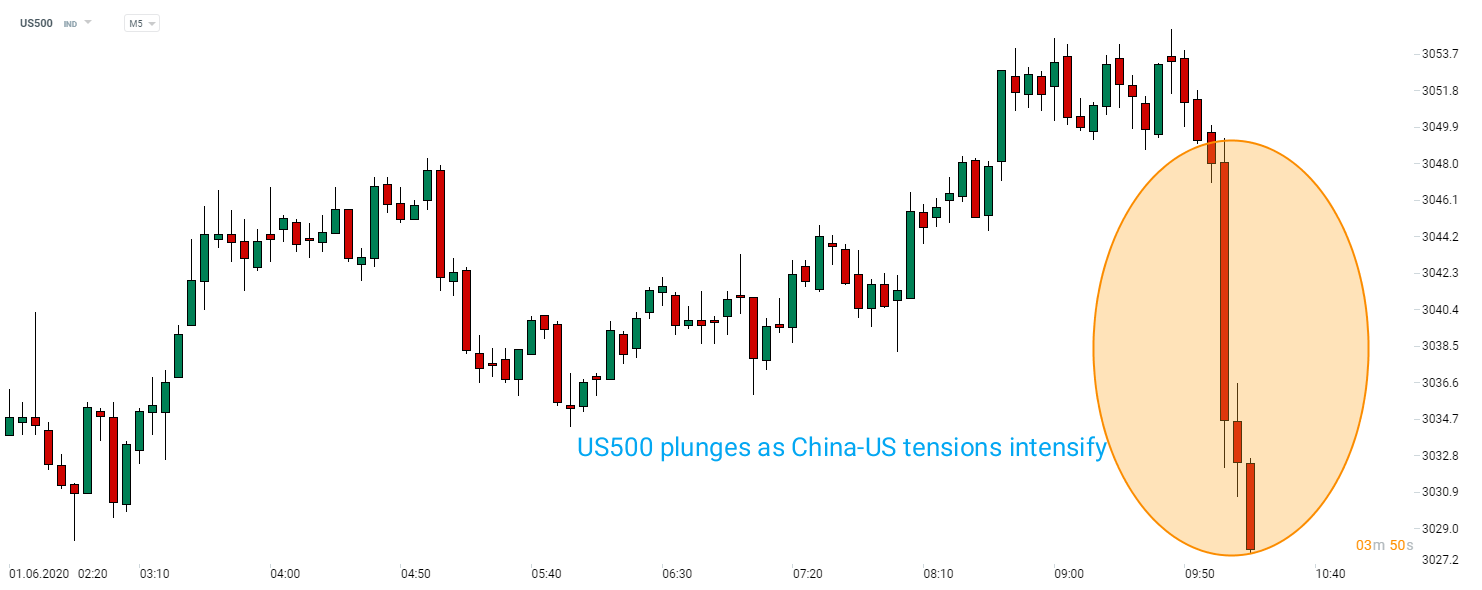 Gli indici azionari europei e i futures delle borse statunitensi sono calati in seguito al rapporto di Bloomberg. Bloomberg afferma che la Cina potrebbe interrompere gli acquisti di prodotti agricoli statunitensi, compresi i semi di soia. Il recente aumento delle tensioni tra Cina e Stati Uniti è indicato come il motivo principale. Si noti che ciò costituirebbe anche una violazione dell'accordo commerciale di Fase 1 e potrebbe innescare ritorsioni statunitensi.