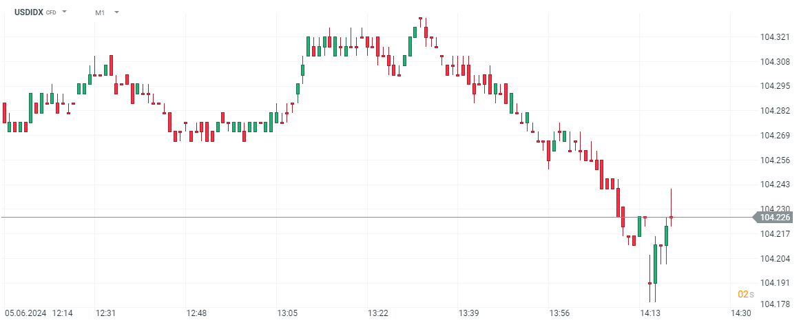 Il dollaro statunitense si stava indebolendo prima della lettura debole del mercato del lavoro, ma dopo i dati, possiamo vedere che USDIDX guadagna leggermente. In generale, l’occupazione privata negli Stati Uniti rimane molto solida.