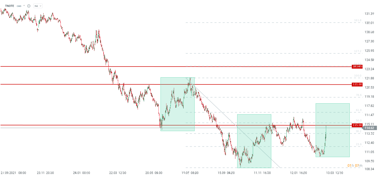 I rendimenti decennali sono scesi a circa il 3,50%. Allo stesso tempo, quei livelli erano bassi per i rendimenti nel dicembre 2022 e nel gennaio 2023. Se la Fed dovesse annunciare che i tassi non aumenteranno in linea con le proiezioni precedenti, potrebbe esserci un calo verso il 3%. In uno scenario del genere, TNOTE potrebbe salire verso l'area di 120,00.