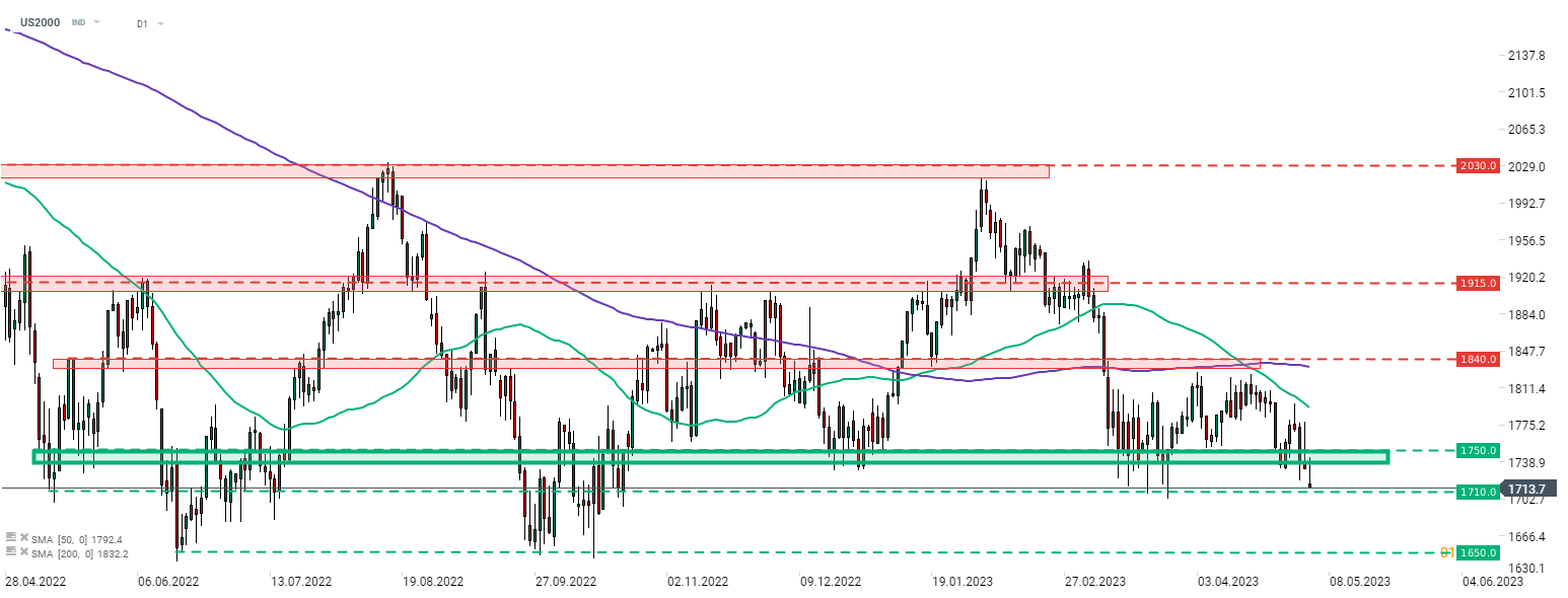 - US2000 scende sotto la zona di supporto di 1.750 punti