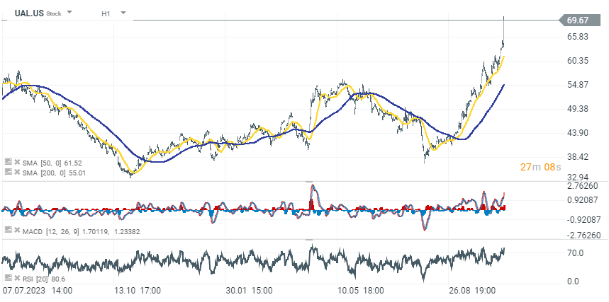 United Airlines (UAL.US) è salita del 9,80% dopo aver superato le aspettative per il Q3 e aver annunciato un programma di riacquisto di azioni da 1,5 miliardi di dollari. La compagnia ha previsto utili per il Q4 tra 2,50 e 3,00 dollari per azione, significativamente superiori rispetto all'anno precedente.