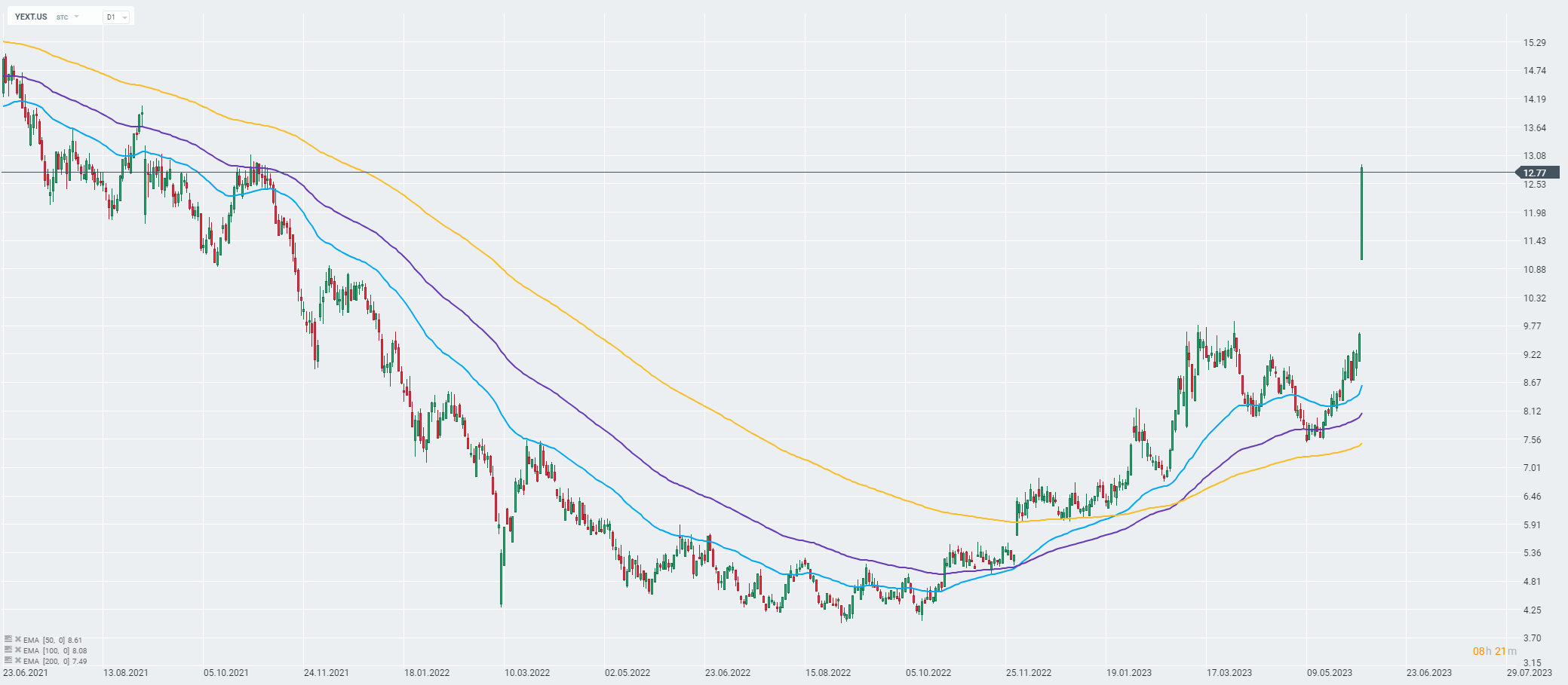 Le azioni di Yext stanno registrando un'enorme volatilità oggi. Fonte: xStation 5