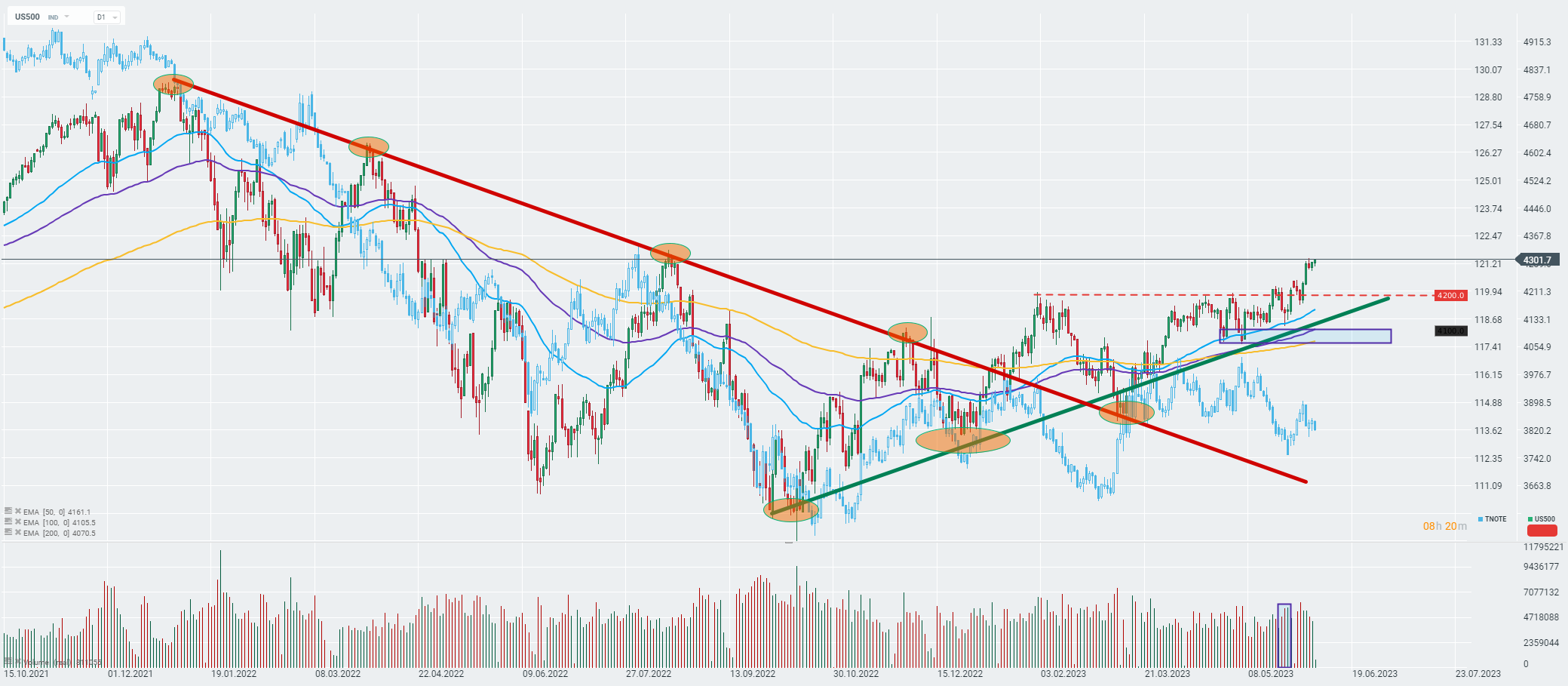 La sessione di mercoledì a Wall Street inizia con i rialzi dei principali indici azionari. L'indice S&P500 (US500) sta attualmente tentando di superare i recenti massimi locali, entrando in livelli che non si vedevano dall'agosto 2022.