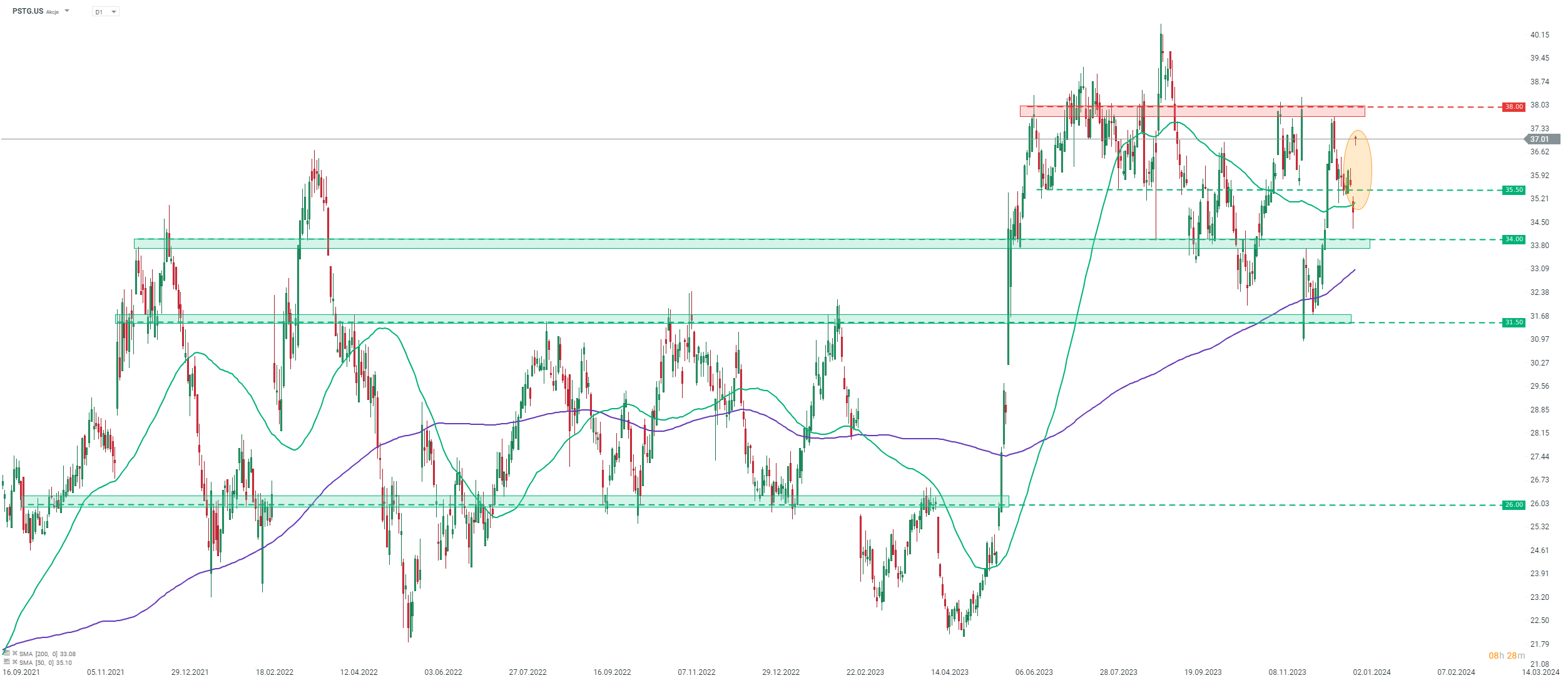 Pure Storage (PSTG.US) ha iniziato la sessione di oggi in rialzo di oltre il 5%, a seguito di un annuncio da parte di S&P Dow Jones Indices. Il titolo ha iniziato la sessione al livello più alto dal 19 dicembre 2023 e si trova a circa il 3% dalla zona di resistenza di $ 38. Fonte: xStation5
