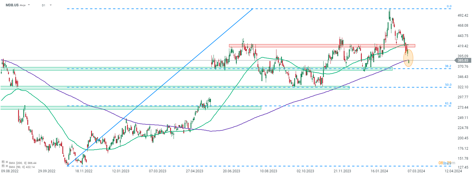 MongoDB (MDB.US) ha iniziato la sessione di oggi con un gap di prezzo ribassista dopo la pubblicazione degli utili fiscali del quarto trimestre del 2024. Sebbene gli utili siano stati migliori del previsto, l’azienda ha deluso le aspettative. Il prezzo delle azioni sta cercando di risalire al di sopra della media mobile a 200 sessioni (linea viola). Fonte: xStation5