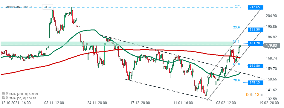 Il titolo Airbnb (ABNB.US) ha iniziato la sessione odierna al rialzo e si sta attualmente avvicinando alla resistenza locale a 181,70$, contrassegnata dal 38,2% del ritracciamento di Fibonacci dell'ultima ondata al rialzo. Se venisse superata, il movimento potrebbe accelerare verso la prossima resistenza a 193,50$, che coincide con il limite superiore del canale ascendente. Fonte: xStation5