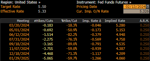 Un calo dei tassi di marzo sembra essere fuori discussione, a seguito dei recenti commenti dei membri della Fed che suggeriscono che la banca centrale potrebbe non avere abbastanza fiducia nell’inflazione entro la riunione di marzo per tagliare i tassi. Per il mercato monetario esiste una probabilità di circa il 18% che la Fed tagli i tassi di 25 punti base il mese prossimo. Tuttavia, maggio sembra ancora probabile, con i mercati che valutano un calo di oltre 17 punti base per allora, ovvero una probabilità di quasi il 70%. Un’indicazione accomodante dell’indice dei prezzi al consumo (inferiore alle attese) farebbe probabilmente aumentare ulteriormente tali aspettative e potrebbe potenzialmente danneggiare il dollaro statunitense, sostenendo al tempo stesso le azioni.