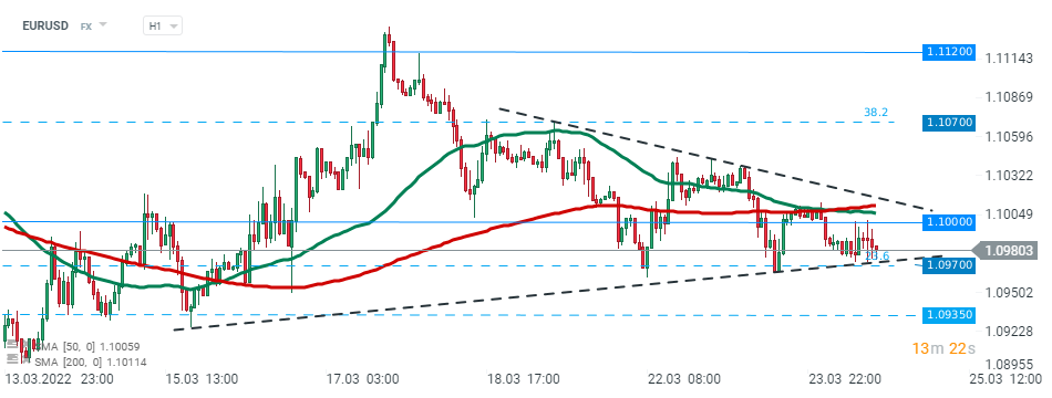 EURUSD ha avuto una reazione relativamente modesta al rilascio di dati sull'inflazione di oggi. La coppia di valute continua ad aggirarsis intorno al livello di 1,0980. Fonte: xStation5