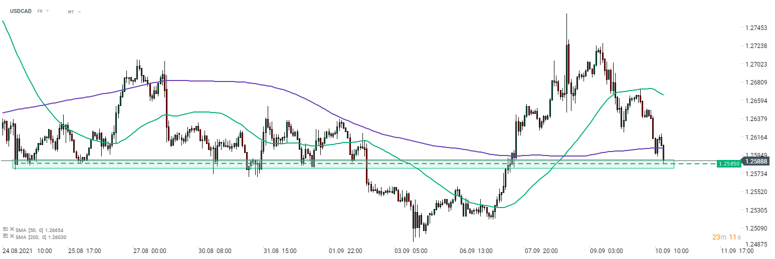 USDCAD ha superato la media mobile a 200 ore dopo il rilascio dei dati statunitensi e canadesi. Tuttavia, il calo è stato minore ed è stato interrotto dal supporto a 1,2585 finora. Fonte: xStation5
