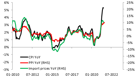 Il PPI statunitense è aumentato dal 7,8 all'8,3% anno su anno ad agosto, più di quanto previsto dagli economisti. Fonte: Macrobond, XTB