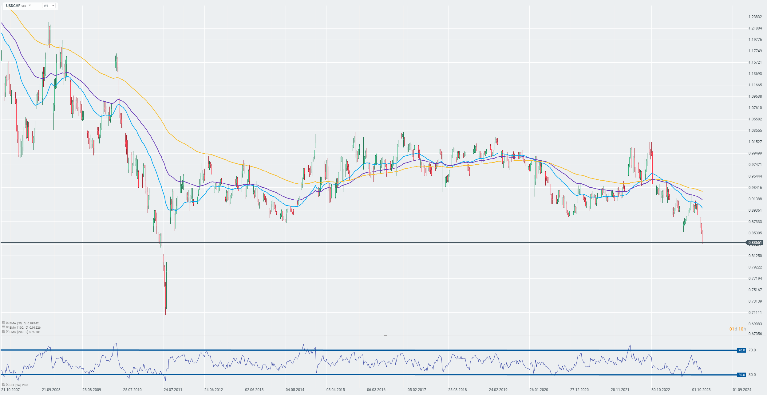 La coppia USDCHF viene scambiata ai livelli più bassi dal 2011. Fonte: xStation