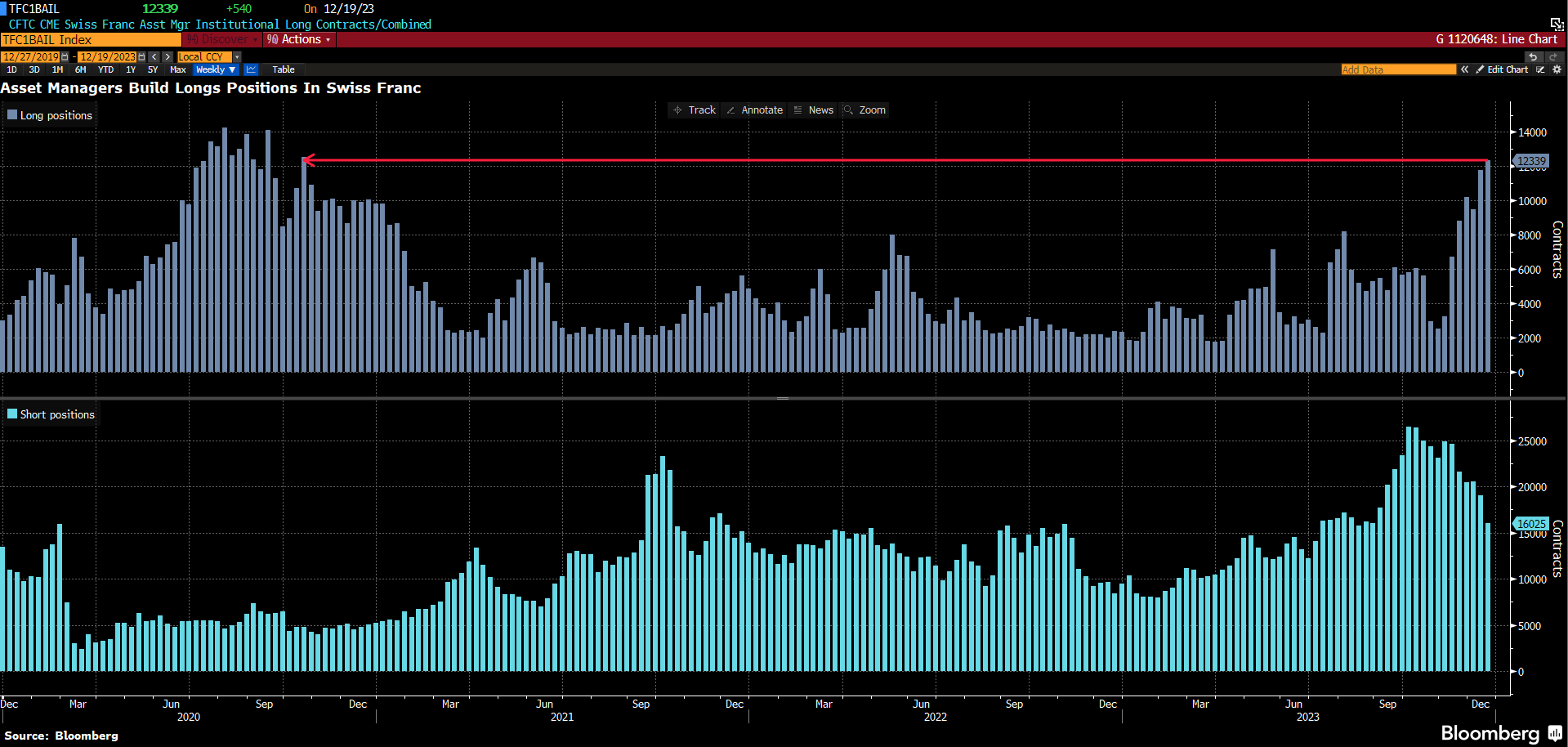 - I gestori di fondi costruiscono la posizione Long netta sul CHF più alta dal 2021