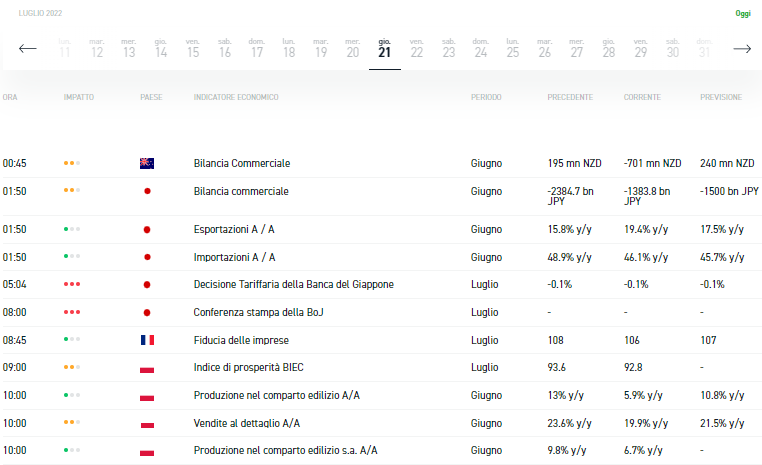 - Puoi rimanere aggiornato su tutti i rilasci di dati con il calendario economico di XTB, che fornisce anche il potenziale impatto di ciascun indicatore.