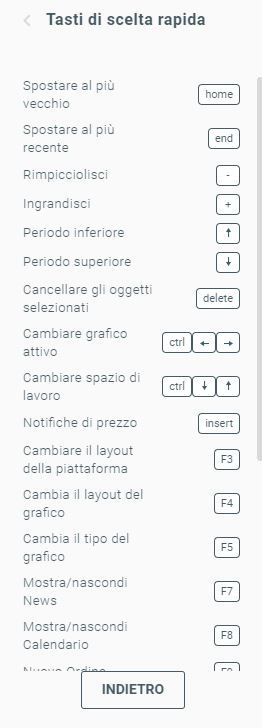 I tasti di scelta rapida possono farti risparmiare tempo, e sono assai preziosi durante le letture dei dati economici, quando I prezzi fluttuano rapidamente.
