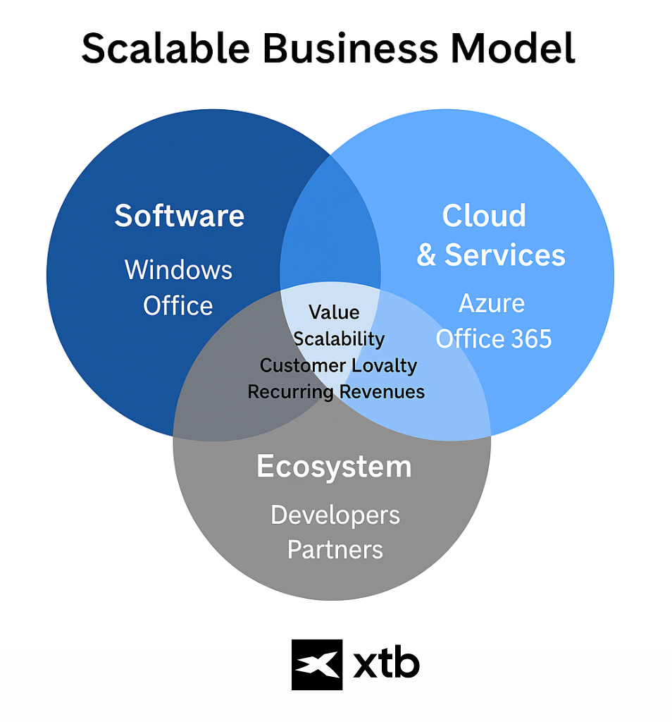 La capacità di Microsoft di adattarsi alle tendenze tecnologiche dimostra come un business flessibile possa sostenere operazioni stabili nel tempo. Il suo ecosistema di software, cloud e piattaforme per sviluppatori crea valore e rafforza la fedeltà dei clienti. A differenza di Apple, Google o Amazon, Microsoft adotta un modello scalabile e collaborativo, combinando innovazione continua e presenza in diversi mercati, rendendola un punto di riferimento nel settore tecnologico.