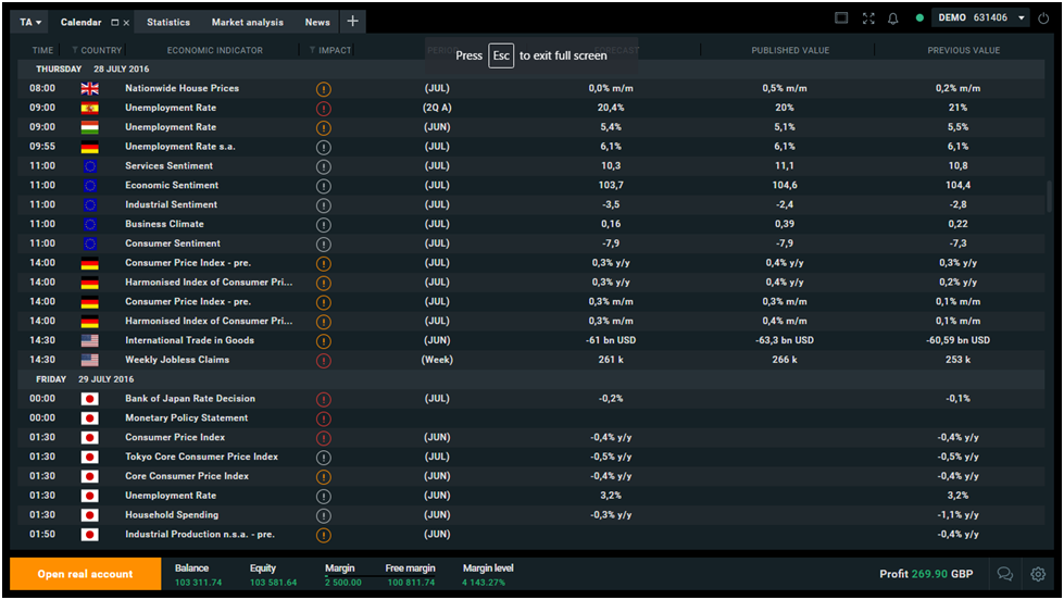 Per poter essere al corrente degli eventi macroeconomici è molto utile usare un calendario macroeconomico che si può trovare qui. Inoltre, gli utenti di xStation non hanno bisogno di usare link esterni per poter seguire gli eventi macroeconomici perché un calendario del mercato è incluso nelle funzionalità della piattaforma.
