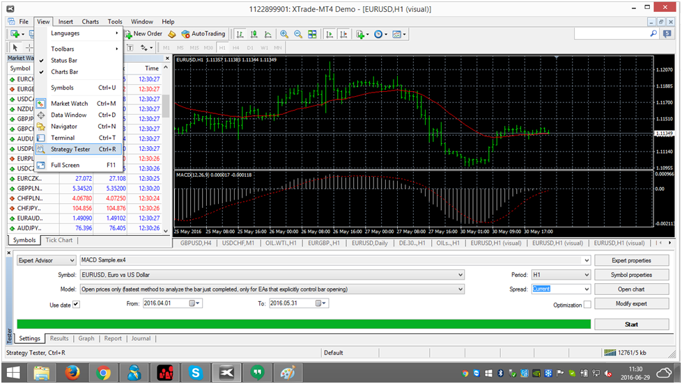 MT4 ti consente di usare delle strategie di automatizzate e di fare il loro backtest con il Tester Strategia di MT4. Puoi usare questa funzione per analizzare qualsiasi risultato ed ottimizzare la tua strategia automatizzata. Per attivare il Tester Strategia, devi semplicemente scegliere l’opzione Tester Strategia da “Visualizza”, posto sulla barra degli strumenti, oppure premere CTRL + R sulla tastiera .