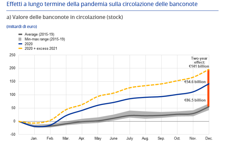 Il consiglio di tenere almeno 70 euro in contante a casa nasce da esperienze recenti che hanno mostrato l’importanza della liquidità fisica in caso di emergenze. La pandemia del 2020 ha provocato un aumento straordinario e sostenuto della domanda di banconote, con un incremento cumulativo di oltre €140 miliardi entro fine anno, pari a oltre il 130% rispetto alla media pre-pandemica. Questo aumento si è verificato nonostante un calo nell’uso quotidiano del contante, a causa di lockdown e spostamento verso pagamenti digitali.