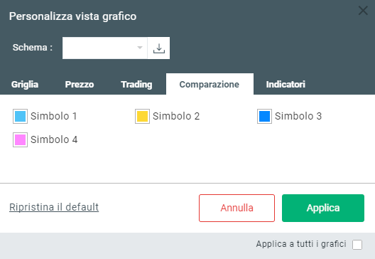 Comparirà una nuova finestra. Seleziona l’etichetta “Comparazione” e adatta i colori del grafico alle tue preferenze.