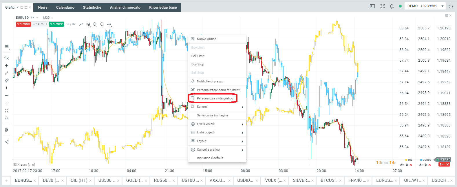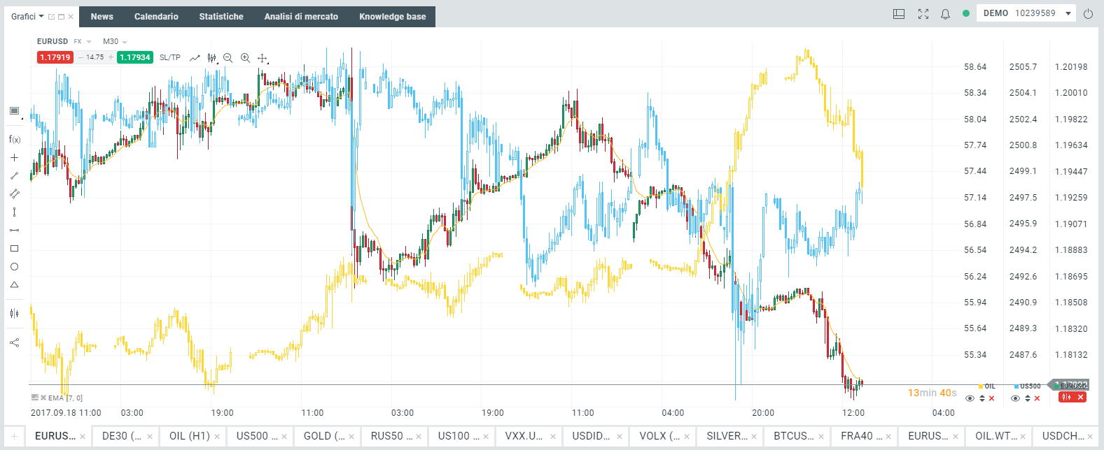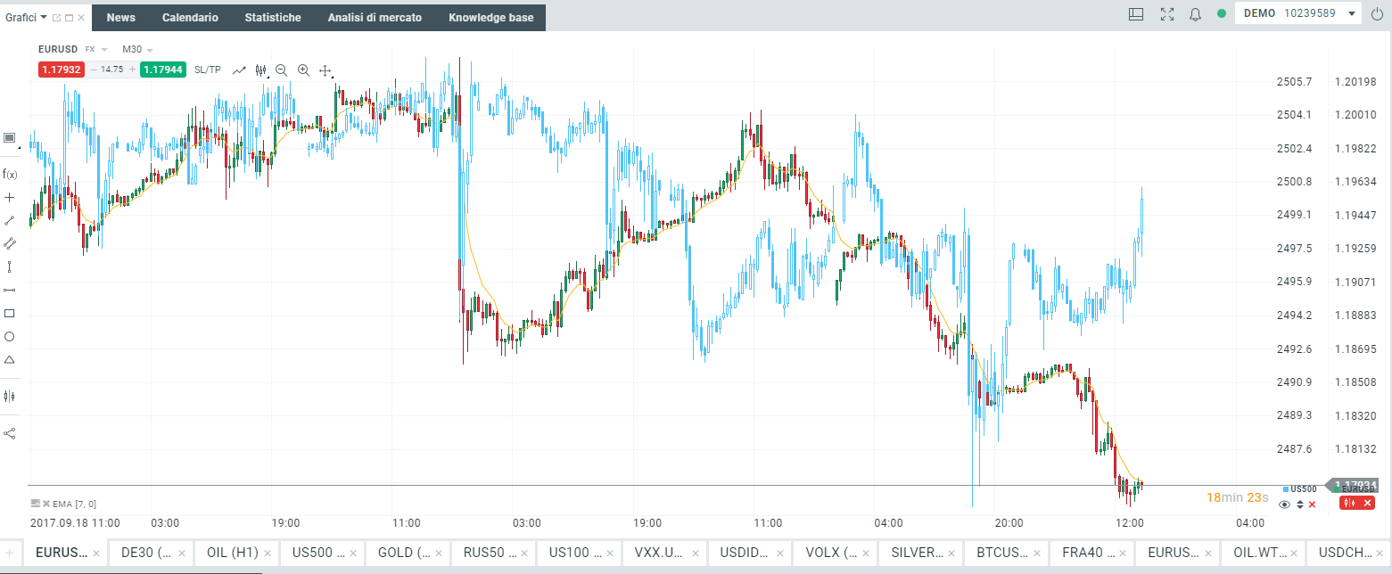 Fatto ciò, comparirà il grafico US500: