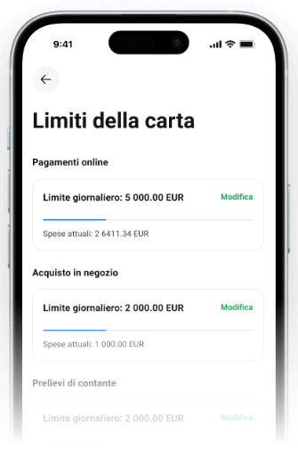 Controllo delle spese: Prendi il controllo delle tue finanze impostando limiti di transazione personalizzati in base alle tue esigenze.