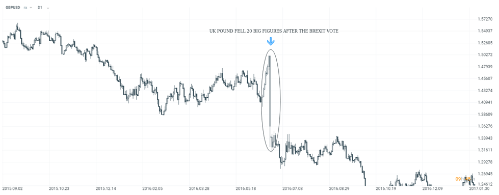 Analizziamo come si è comportato il mercato in vista delle elezioni americane del novembre 2016. Il consenso era che Hillary Clinton sarebbe stata il prossimo presidente degli Stati Uniti. La grande maggioranza dei sondaggi rispettabili ha dato a Clinton un vantaggio su Donald Trump, quindi il mercato è stato relativamente calmo poiché Trump è stato visto come il candidato più "imprevedibile". Tuttavia, la sua vittoria è stata una grande sorpresa, che ha portato ad alcune mosse significative, poiché i trader hanno dovuto valutare ciò che la sua presidenza potrebbe comportare.