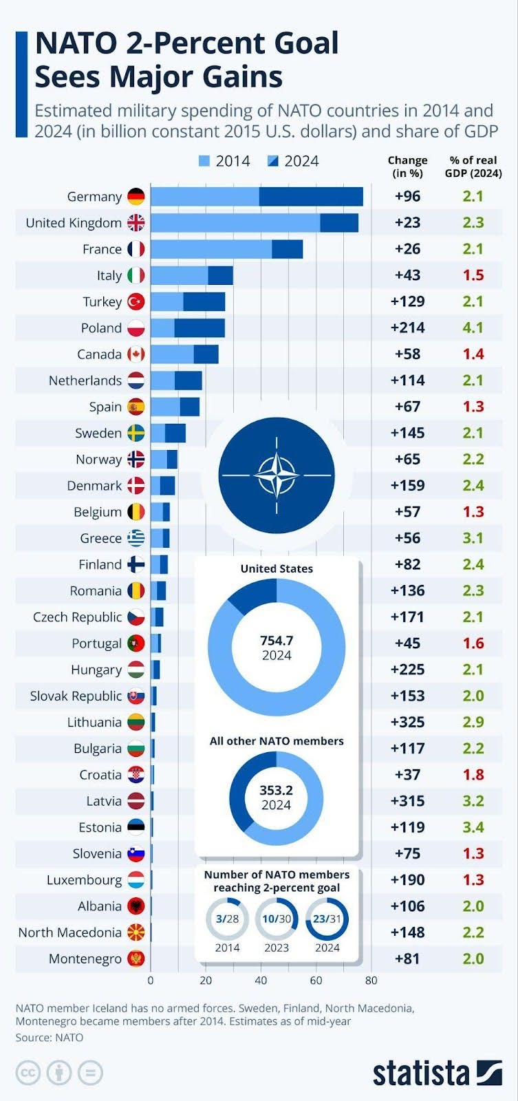 Negli ultimi due anni, le grandi aziende tecnologiche sono state considerate i principali beneficiari degli eventi globali, con la crescita dell'AI che ha fatto aumentare significativamente il valore delle azioni. Tuttavia, un altro settore che ha registrato buoni risultati è quello della difesa e delle armi, grazie all’aumento delle tensioni geopolitiche, tra cui il conflitto in Ucraina, il peggioramento delle relazioni tra Stati Uniti e Cina e l'intensificarsi delle tensioni in Medio Oriente, che spingono le nazioni occidentali a concentrarsi maggiormente sulla difesa. Questa tendenza è stata ulteriormente rafforzata dall'amministrazione Trump, che ha spinto per una maggiore autosufficienza dell'Europa nel settore della difesa. Negli ultimi decenni, gli Stati Uniti sono stati il principale garante della difesa in Europa, spendendo una percentuale del PIL più alta rispetto ai paesi europei. Sebbene i membri della NATO si siano impegnati a spendere il 2% del PIL in difesa, dieci anni fa molti erano sotto questa soglia. Nel 2024, la maggior parte dei membri ha raggiunto l'obiettivo, con una parte significativa della spesa destinata all'acquisto di nuove armi e munizioni. Tuttavia, l'Europa affronta ancora diverse sfide nella difesa, tra cui investimenti insufficienti, forze armate non standardizzate, difficoltà nell'unificare gli sforzi di difesa e burocrazia, che rallentano i processi e li rendono più costosi. Sebbene ci siano miglioramenti, l'Europa è ancora lontana dall'autosufficienza in questo settore.