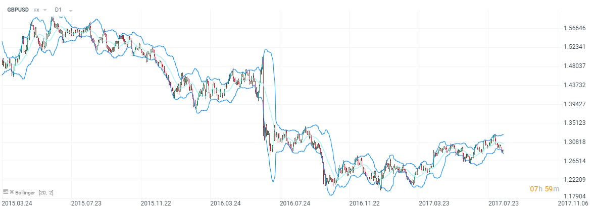 Le bande di Bollinger consistono in un indice di volatilità calcolato sulla base di una media mobile e della deviazione standard di tale media. Pertanto, maggiore è la distanza tra la banda superiore e inferiore, maggiore è il livello di volatilità del mercato.