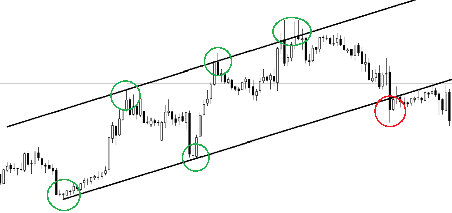 Nell’esempio qui mostrato è stato identificato un range, formando un candale di trend. Un range trader cercherebbe di andare long sul livello del supporto e di andare short al livello della resistenza.