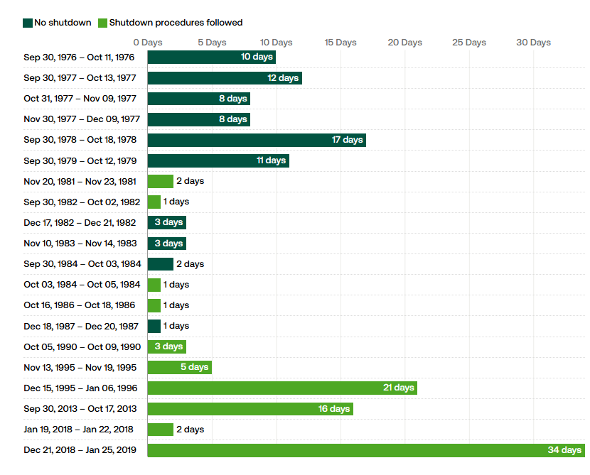 Gli shutdown non sono eventi nuovi nella storia politica americana. Secondo i dati raccolti da Congress.gov, dal 1977 gli Stati Uniti hanno vissuto 20 periodi di interruzione dei servizi federali, di cui 10 ufficialmente registrati come shutdown.