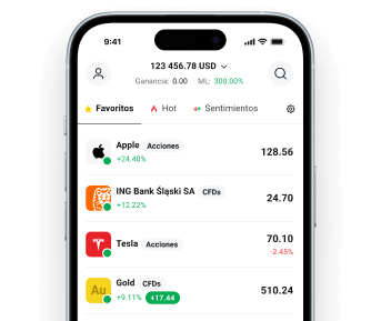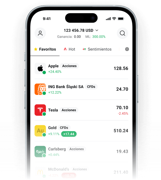 *Los instrumentos financieros que ofrecemos conllevan riesgo. Las acciones fraccionarias (FS) son un derecho fiduciario adquirido de XTB sobre partes fraccionarias de acciones y ETF. Los FS no son un instrumento financiero separado. Los derechos corporativos limitados están asociados con FS. Familiarízate con la documentación legal relevante en la sección de Información legal de la web.