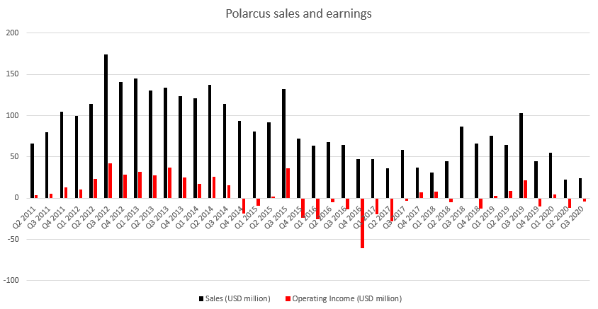 Polarcus ha estado luchando durante mucho tiempo. Si bien los ingresos comenzaron a repuntar en 2018 y 2019, la pandemia de coronavirus ha destruido la demanda. La empresa ha tenido problemas para generar ganancias en los últimos trimestres. Fuente: Bloomberg, XTB