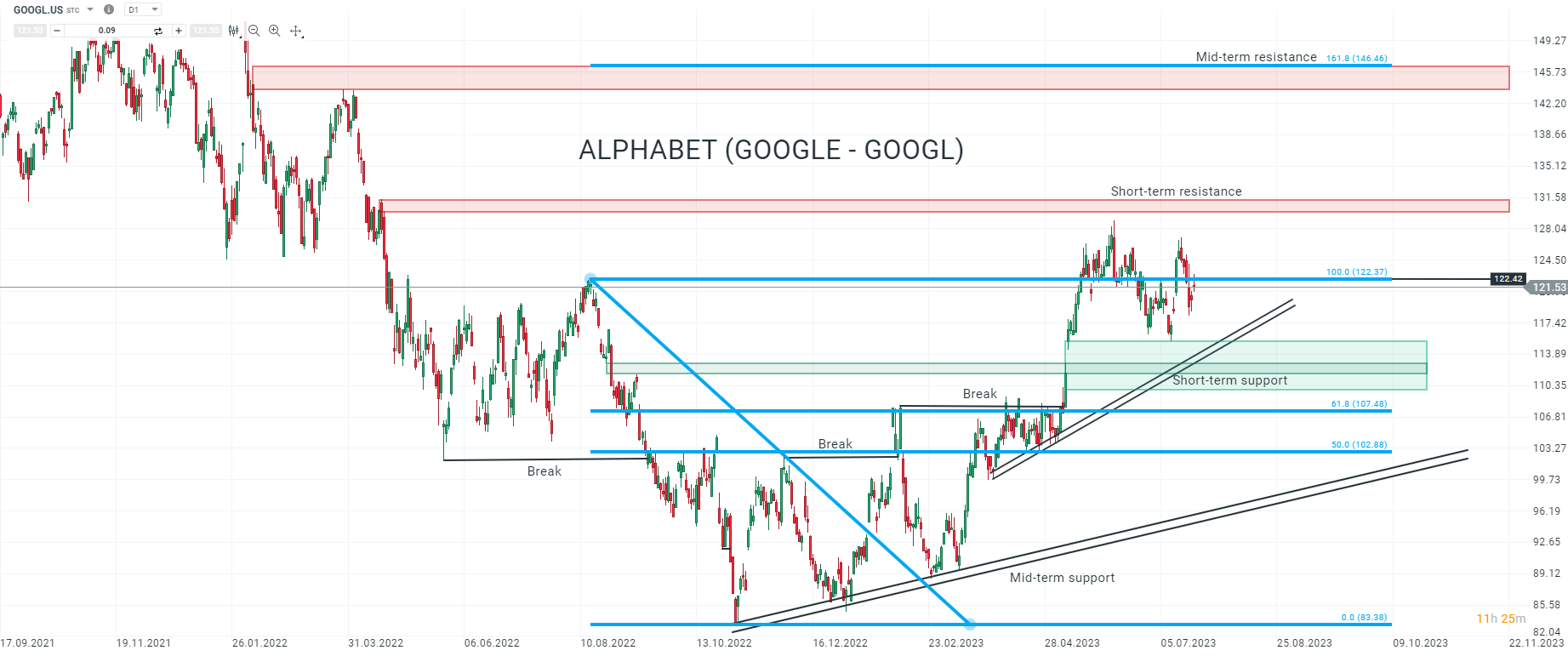 De cara a los resultados, Alphabet cuenta con un múltiplo PER a 12 meses de 22x veces beneficios, es mucho más barato que Apple Inc. (AAPL.US) con 32x, Microsoft (MSFT.US) con 35x y Amazon.com, Inc. (AMZN.US) con 82x.
