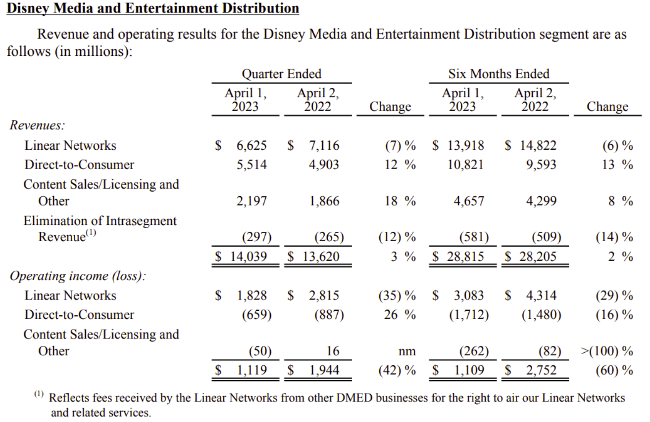 Probablemente lo que más afectó la comparación trimestral fue la finalización anticipada de una licencia de contenido. Este cambio de estrategia cambió efectivamente la forma en que Disney ofrece su contenido. Ningún trimestre futuro se beneficiaría de lo que antes era un ingreso.