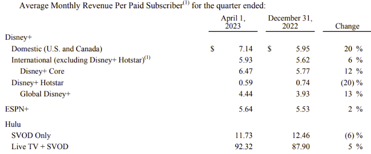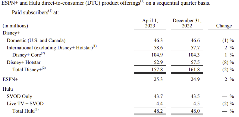 Resumen de Disney de los resultados de suscriptores de streaming (Disney, segundo trimestre de 2023, comunicado de prensa de resultados)