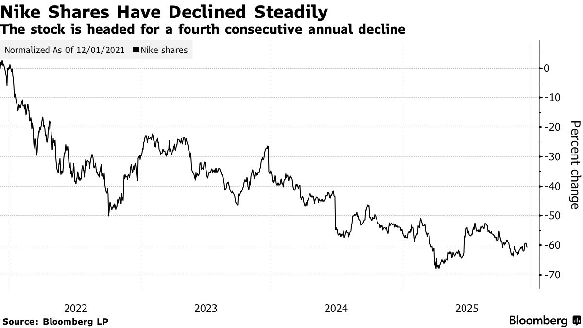 Nike, el mayor grupo de ropa deportiva del mundo, indicó que espera que sus ingresos bajen a un dígito bajo en el trimestre que comenzó el 1 de diciembre. La guía supone un giro sorpresivo después de dos períodos consecutivos de crecimiento, elevando la presión sobre la dirección para acelerar el repunte.