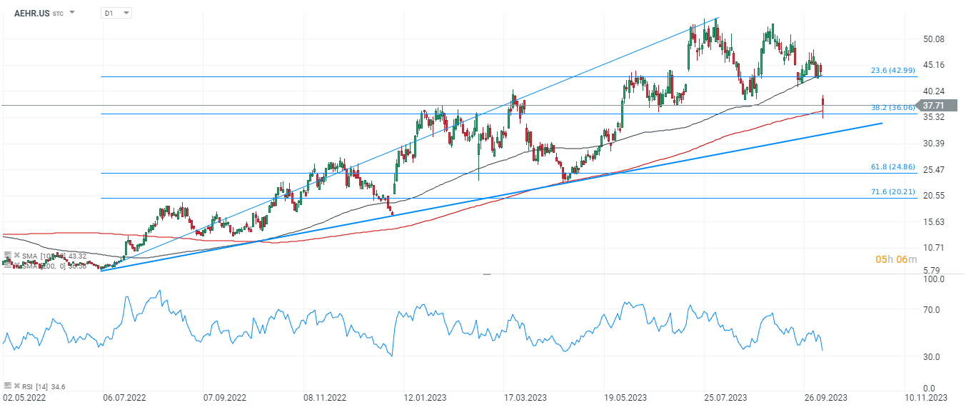 Las acciones de Aehr Test Systems (AEHR.US) retrocedieron hoy por debajo de la SMA200 (línea roja) - pero la demanda elevó rápidamente la acción desde el área de $36, ayudada por una mejora más amplia en los sentimientos de Wall Street. Fuente: xStation5