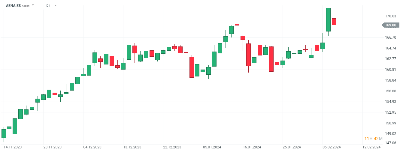 Las acciones de Aena acumulan una subida del 2% en lo que va de año.