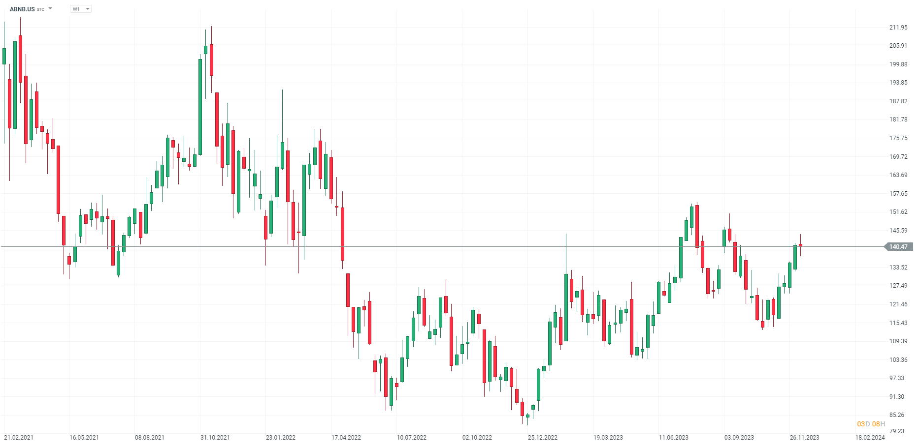 Las acciones de Airbnb suben más de un 65% en lo que va de año y en el último mes subieron casi un 18%, beneficiándose del rally general del mes de noviembre.