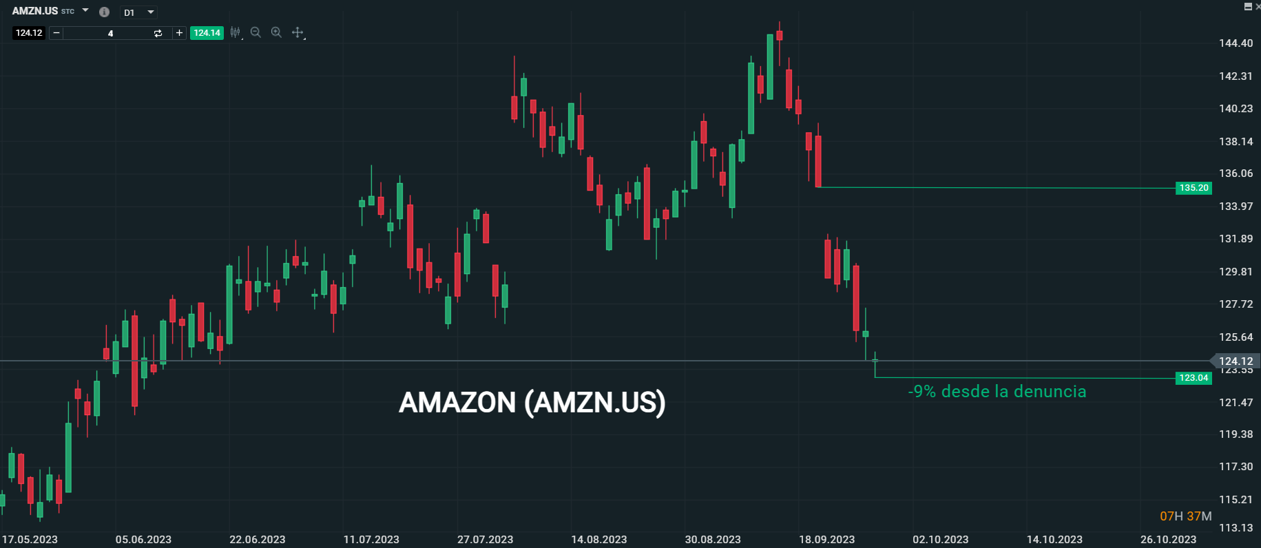 Desde que se hiciera pública la denuncia, Amazon acumula una caída del 9%. Fuente: xStation
