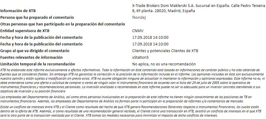 "Este informe se proporciona sólo con fines de información general y con fines educativos. Cualquier opinión, análisis, precio u otro contenido no constituyen asesoramiento de inversión o recomendación en entendimiento de la ley de Belice. El rendimiento en el pasado no indica necesariamente los resultados futuros, y cualquier persona que actúe sobre esta información lo hace bajo su propio riesgo. XTB no aceptará responsabilidad por ninguna pérdida o daño, incluida, sin limitación, cualquier pérdida de beneficio, que pueda surgir directa o indirectamente del uso o la confianza de dicha información. Los contratos por diferencias (""CFDs"") son productos con apalancamiento y acarrean un alto nivel de riesgo. Asegúrese de comprender los riesgos asociados. "